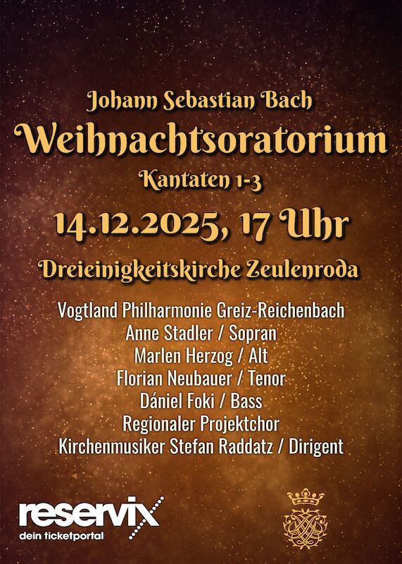 Konzerte Vogtland Philharmonie Greiz-Reichenbach, Projektchor, Solisten, Stefan Raddatz 14.12.2025 Tickets ab 10 EUR Heeresmusikkorps Kassel 14.12.2025 Tickets ab 14,20 EUR Weihnachtssingen auf Burg Stettenfels 14.12.2025 Tickets ab 18 EUR Cuarteto Latinoamericano de Bamberg 14.12.2025 Tickets ab 55,10 EUR A & The Universe 14.12.2025 Tickets ab 15 EUR BACH Chor & Orchester Fürstenfeldbruck - Gloria 14.12.2025 Tickets ab 26 EUR Konzert zugunsten der Aktion 100 000 14.12.2025 Tickets ab 11 EUR Sankt Nikolai Chor Flensburg + Sankt Nicolai Chor Eckernförde 14.12.2025 Tickets ab 30 EUR Angela Rossel, Manuel Wiencke und Shenglong Li 14.12.2025 Tickets ab 22 EUR Das Ohr der Welt an Europas Herz - Freiburger Akkordeon Orchester 14.12.2025 Tickets ab 21,60 EUR Philipp-Nicolai-Kantorei Unna 14.12.2025 Tickets ab 16,60 EUR Luz Amoi 14.12.2025 Tickets ab 23 EUR PaginierungErsteVorherige1…536537538539540…2054NächsteLetzer