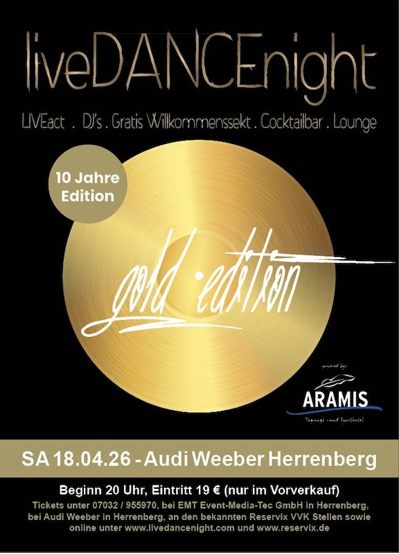Kultur Greifswalder Schlager- und Tanznacht - mit DJ und Stargast Mitch Keller 18.04.2026 Tickets ab 25 EUR Drei Nonnen im Lift 18.04.2026 Tickets ab 29 EUR Dieter Großmann, Renate Großmann, Stefan Major 18.04.2026 Tickets ab 17,50 EUR Heisse Zeiten - Die Wechseljahre-Revue 18.04.2026 Tickets ab 23 EUR GRENDTheater 18.04.2026 Tickets ab 24,10 EUR Poetry Slam #87 18.04.2026 Tickets ab 14,20 EUR Alte Liebe. Von Elke Heidenreich 18.04.2026 Tickets ab 32 EUR Mit Anja Kimmelmann & Jochen Döring. Regie: Rainer Ewerrien. 18.04.2026 abgesagt Marionettenbühne Mottenkäfig e.V. 18.04.2026 Tickets ab 16 EUR Kleine Bühne Landau e.V. 18.04.2026 Tickets ab 10 EUR 19€ zzgl. VVK-Gebühren (liveDANCEnight) 18.04.2026 Tickets ab 21,90 EUR Nachtwächter Stadtführung Fulda "Die Klassische" - "Die Klassische" 18.04.2026 Tickets ab 20 EUR PaginierungErsteVorherige1…11481149115011511152…2394NächsteLetzer